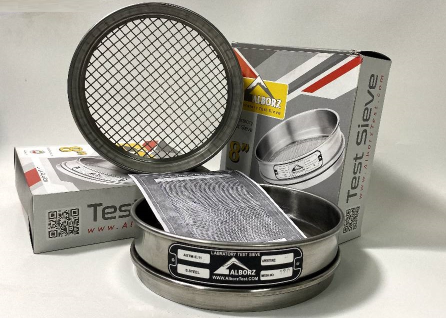 صنایع لوازم آزمایشگاهی البرز تولید کننده تخصصی الک های آزمایشگاهی در سه سایز فریم 8-12-18 اینچ طبق استاندارد ASTM E11