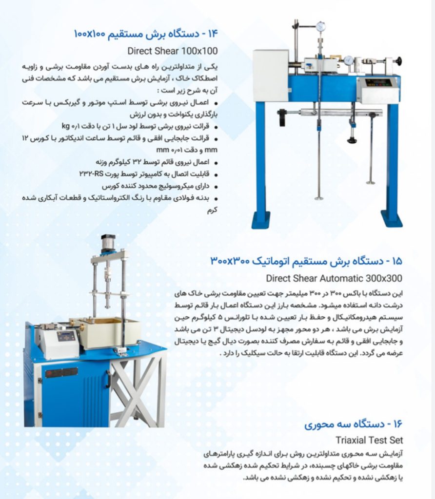 تولید تجهیزات آزمایشگاهی خاک بتن قیر آسفالت کشش میلگرد